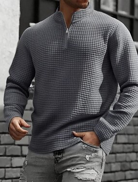 Homme Sweat-shirt Sweat-shirt gaufré Noir Blanche Vert Véronèse Kaki Gris Col montant Uni Jacquard Patchwork A côtes Texturé Quotidien Fête Sortir Polyester Texturé Streetwear Occasionnel Automne