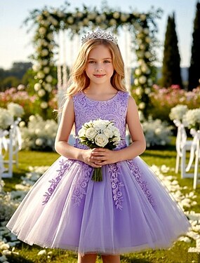 Robe de Demoiselle d'Honneur Fille enfants Fille Robe de princesse Utilisation Mariage Soirée Elégant Magnifique Maille Floral Sans Manches Col Ras du Cou Rose Claire Bleu 4 ans et +