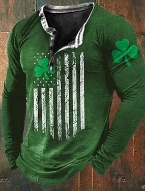 Chemise Henley pour homme de la Saint-Patrick Tee graphique trèfle Drapeau national Henley Vêtements Apparel Impression 3D Quotidien Saint-Patrick Chemise à manches longues Boutonnée Imprimé Mode