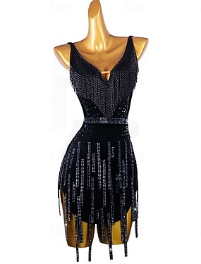Danse latine Robe Couleur Pure Fantaisie Paillette Femme Utilisation Entraînement Sans Manches Taille haute Polyester