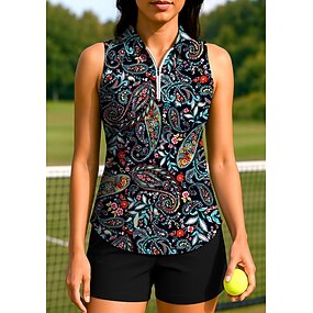 Femmes Paisley Multicolore Bohème Hauts T-shirt de sport T-shirt POLO Chemise de tennis Sans manches Fermeture éclair UPF50+ Résistant aux UV Haute élasticité Évacuation de l'Humidité Respirant