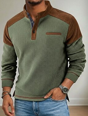 Homme Tee-shirt Gaufre T-shirt T-shirt Henley gaufré manche longue Col montant Henley Automne Hiver Printemps & Automne Couleur Unie Traditionnel / Vintage Chic décontracté Bloc de Couleur Pur