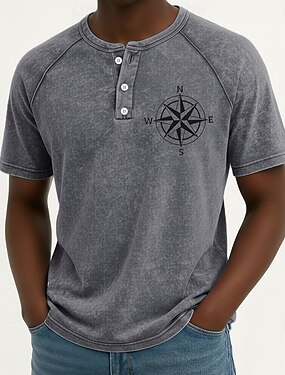 Homme Vintage Lavé Chemise Henley T-shirt Chemise délavée Manche Courte ancien Designer Occasionnel Occasionnel Quotidien Extérieur Été Printemps Toutes saisons Bleu Ciel Pourpre Gris Henley T-shirt