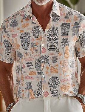Homme Cocotier Ethique / Africain Tiki Chemise Chemise hawaïenne Chemises tropicales Manche Courte Hawaïen Resort Vacances à la Plage Été Printemps Col Rabattu Impression 3D Chemises boutonnées Bleu