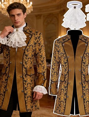 Rococo Médiéval Renaissance Manteau Costume élégant Collerette Manches longues Noble Tenue royale Déguisement Homme Fantaisie Halloween Carnaval Performance LARP Foire de la Renaissance Adulte