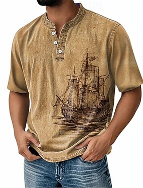 Homme Vintage T-shirt Chemise Henley Manche Courte ancien Designer Rétro Vintage Occasionnel Quotidien Rue Printemps & Été Été Printemps Vert Armée Rose Dragée Bleu Violet Kaki Henley T-shirt Henley