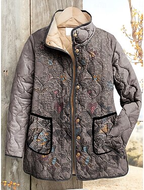 Femmes Veste matelassée Imperméable Coupe-vent Broderie Actif ancien Mode Quotidien Fleuri Vacances Maison Rue Occasionnel Régulier Col montant Coupe régulière manche longue Vêtements d'extérieur
