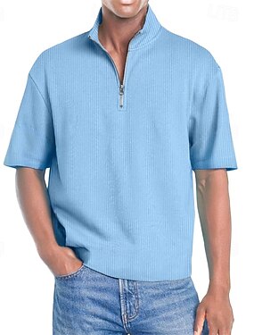 Homme Polo Polo quart de zip Tenue quotidienne Date Zip quart Manche Courte Mode Basique Uni Fermeture éclair Été Coupe régulière Vin Noir Blanche bleu marine Violet Marron Polo