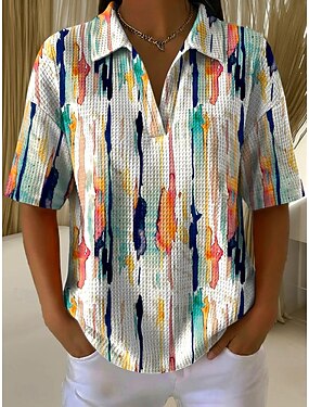 Chemise Femme Manches Courtes Graphique Géométrique Rayé Vintage Tropicale Élégante Chemise Col Classique Hauts Quotidien Bleu Rose Violet Orange Gris Été Printemps