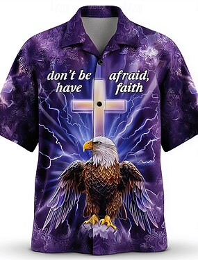Homme Éclair Croisés Aigle Chemise Chemise Boutonnée Chemise à col camp Manche Courte Vintage Rétro Vêtements de rue Vacances Été Printemps Col cubain Impression 3D Bleu Noir Violet