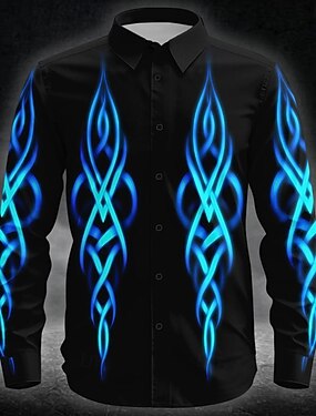 Chemise à boutons Costumes Tribal Néon Glow pour hommes Chemise à manches longues Style punk gothique sombre Vacances extérieur Été Printemps Col rabattu Chemises à imprimé 3D Bleu Violet Vert