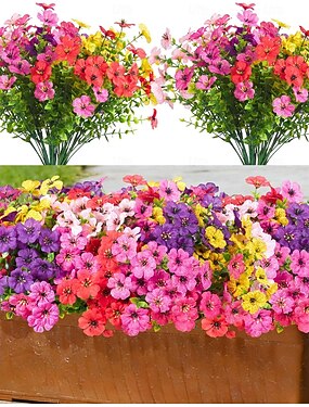 Fleurs violettes artificielles d'extérieur, bouquets de 12/24 fleurs en soie artificielle résistantes aux UV, fleurs printanières artificielles pour jardinières d'extérieur, jardin d'intérieur,