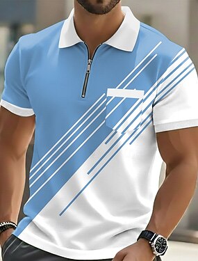 Homme Abstrait Géométrique Polo Manche Courte Polos Revers Occasionnel Athleisure Tenue quotidienne Impression 3D Boutons Été Bleu Clair Violet Gris foncé