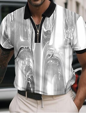 Homme Abstrait Métallique Polos à zip Manche Courte Polos Chemises à Col Occasionnel Athleisure Tenue quotidienne Impression 3D Été Rouge Bleu Violet