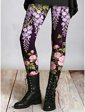 Femmes Leggings Leggings confortables Vacances ancien Occasionnel Longueur complète Taille haute Fleuri Graphique Impression Confortable Élastique Occasionnel Quotidien Vacances Violet Été Printemps