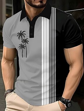 Homme Palmier Polo Manche Courte Polos Revers Occasionnel Resort Athleisure Hawaïen Impression 3D Boutons Été Bleu Violet Marron