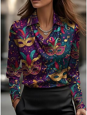 Carnaval Femmes Chemise Imprimé Drapé Graphique Élégant ancien Occasionnel manche longue Col Bénitier Hauts Réguliers Quotidien Travail Fête Violet Printemps Automne