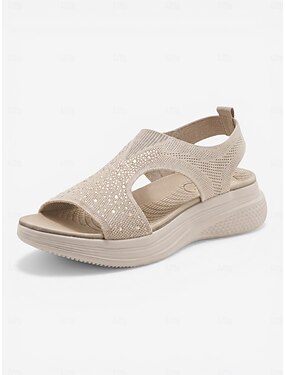 Sandales en maille pour femme avec soutien de la voûte plantaire en amande – chaussures confortables, respirantes et extensibles à enfiler, avec semelle rembourrée, sandales d'été légères ornées de