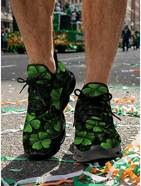 Baskets pour hommes pour la Saint-Patrick – imprimé trèfle vert, style sportif et confortable pour les défilés, les fêtes et les festivités