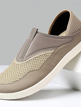 Mocassins beiges en maille pour homme, à lacets, légers, respirants et confortables, parfaits pour la marche au quotidien, les voyages, la conduite, les tenues de week-end, les loisirs en plein air et un style décontracté chic.