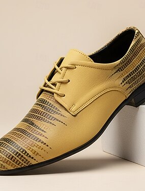 Chaussures habillées à lacets en similicuir jaune pour hommes, modernes et élégantes, pour le bureau et les tenues décontractées professionnelles.