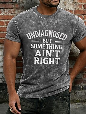 T-shirt vintage bleu délavé pour homme, avec l'inscription « Non diagnostiqué, mais quelque chose cloche », un t-shirt graphique humoristique et sarcastique, effet vieilli, style rétro années 90,