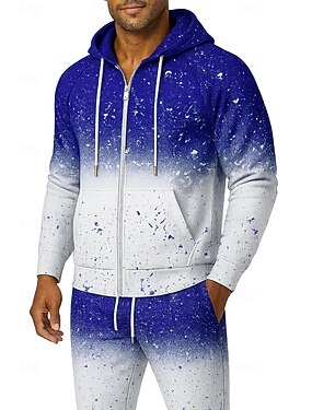 Homme Sweat à capuche Ensemble Survetement Survêtement 2 pièces Cordon de serrage Zip Up Dégradé de couleur Ensemble Vêtements Automne Hiver Noir Bleu Métier Extérieur Voyage Léger Mode manche longue