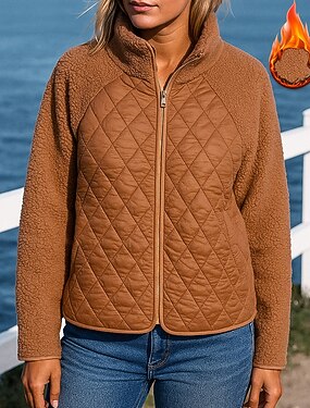 Femmes Bloc de Couleur Blouson d'Aviateur Veste polaire zippée Automne manche longue Athleisure Coupe-vent Chaud Épais Course Extérieur Voyage Vacances Noir Blanche Beige Tenue de sport Tenues de