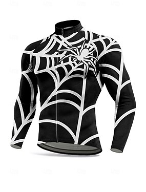 Homme Hauts Maillot de cyclisme Graphique Géométrique Araignée manche longue Cyclisme Maillot Top avec 3 poches arrière Soleil Protection solaire Écran solaire Séchage Rapide Des sports Noir Vêtement