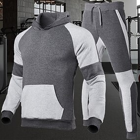 Homme Ensemble Survetement Tenue de Jogging Cordon de serrage Avec Poches Bloc de Couleur Pulls à Capuche et Pantalons Ensemble de vêtements de sport Printemps Automne Noir Rouge Entraînement en