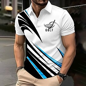 Homme Golf Polos de Sport Manche Courte Polos Chemises à Col Occasionnel École Sports Tenue quotidienne Impression 3D Été Blanche Bleu Orange