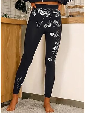 Femmes Jegging Vacances ancien Style Ethnique Longueur complète Taille haute Coupe haute Confort Séchage Rapide Respirant Élastique Quotidien Extérieur Salle de sport Bleu Noir Bleu de minuit Été
