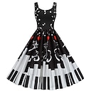 Rétro Vintage Hepburn Robe de cocktail Mi-long Robe Robe Évasée Normal Cœur Musique Ligne A Col en U Déguisement Femmes Carnaval Nouvel An Saint-Valentin Date Robe Enterrement de Vie de Jeune Fille |