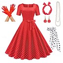Robes vintage rétro années 1950 Grease Outfits Jupon Rockabilly Jupe en cerceau Robe A-Line Tutu Robe fantaisie à pois Fête/Soirée féminine Fête masquée Robe pour adultes Gants Boucles d'oreilles |