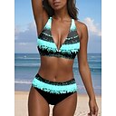 Maillot de bain 2 pièces bikini pour femmes culotte sexy halter ombre géométrique V fil sans manches |