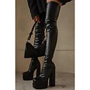 Bottes à plateforme hautes en similicuir noir pour femme, tige extensible et talon épais, style punk gothique pour les soirées rave et les tenues d'automne, à associer avec des mini-jupes |
