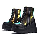 Bottines à plateforme imprimées serpent holographiques pour femmes, style punk gothique audacieux avec talon épais et fermeture éclair latérale, parfaites pour les soirées et les festivals |