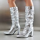 bottes montantes argentées métallisées pour femmes – bottes à talon bloc souples à imprimé serpent brillant pour la mode des fêtes, des clubs et des festivals |