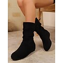 Bottes mi-mollet souples en similicuir noir pour femme – bottines d'hiver à talon plat, chaussures confortables et décontractées pour temps froid |
