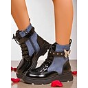 Bottines de combat noires en cuir verni et denim pour femme avec breloque papillon – bottines à lacets tendance pour le streetwear décontracté, la K-pop, les fêtes et les tenues d'automne |