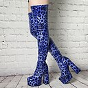 bottes à plateforme cuissardes sexy à imprimé léopard bleu pour femmes avec talons épais – chaussures audacieuses pour les fêtes, les événements et les sorties nocturnes |