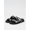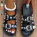 sandales à enfiler noires d'inspiration occidentale pour femmes - sandales à lanières ornées de boucles argentées pour des tenues d'été bohèmes et décontractées |