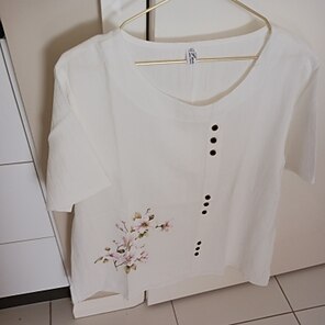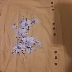The attractioon to this blouse was the exquisite floral design. It is east to iron and as someone said to me, " My you look grand today." Why? I was wearing this blouse. Thanks for this exceptionally beautiful design on a white back ground.