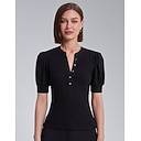 Femmes Couleur Unie Formel Extérieur Bureau Manches bouffantes Noir Rose Claire Manche Gigot Manchette Boutons Devant Manche Courte Élégant Mode Décontracté Quotidien Cranté Été Printemps |