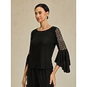 Femmes Hauts Élégants A Volants Paillettes Œillet Élégant Quotidien Dames Manche 3/4 Manche flottante Col Bateau Hauts Réguliers Quotidien Travail robe demoiselle d honneur Noir Printemps Automne |
