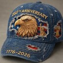 Casquette de baseball en denim délavé commémorant le 250e anniversaire des États-Unis, ornée d'un aigle, style vintage américain (1776-2026), casquette patriotique pour la fête de l'indépendance, |