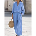 Femmes Chemise Ensembles de Pantalons Jambe large Pantalons Combinaison Manche Courte Une Épaule Couleur Unie Streetwear Quotidien Occasionnel Quotidien Bleu Blanche Bleu Marine Automne & Hiver Coupe |