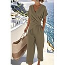 Femmes Ensembles de Pantalons Haut boléro Manche Courte Col en V Uni Froncé Élégant Mode Streetwear Occasionnel Quotidien Extérieur Bleu Kaki Beige Été Coupe régulière |
