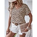Femmes T-shirt Imprimé Léopard Mode Manche Courte Col en V Hauts Réguliers Occasionnel Quotidien Marron Été |