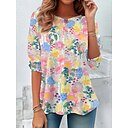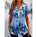 T-shirt pour femmes floral vintage décontracté manches courtes col en V tops réguliers quotidiens boutons imprimé bleu rose violet vert été printemps |